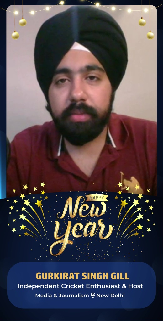 Gurkirat Singh Gill, an independent cricket enthusiast and host, extends warm New Year wishes to all. He hopes that the coming year will be filled with happiness, success, and prosperity for everyone.