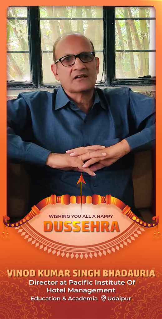 Vinod Kumar Singh Bhadauria, Director at Pacific Institute of Hotel Management, sends his warm wishes on the auspicious occasion of Dussehra. He however asks everyone to be careful and safe while celebrating the festival.
